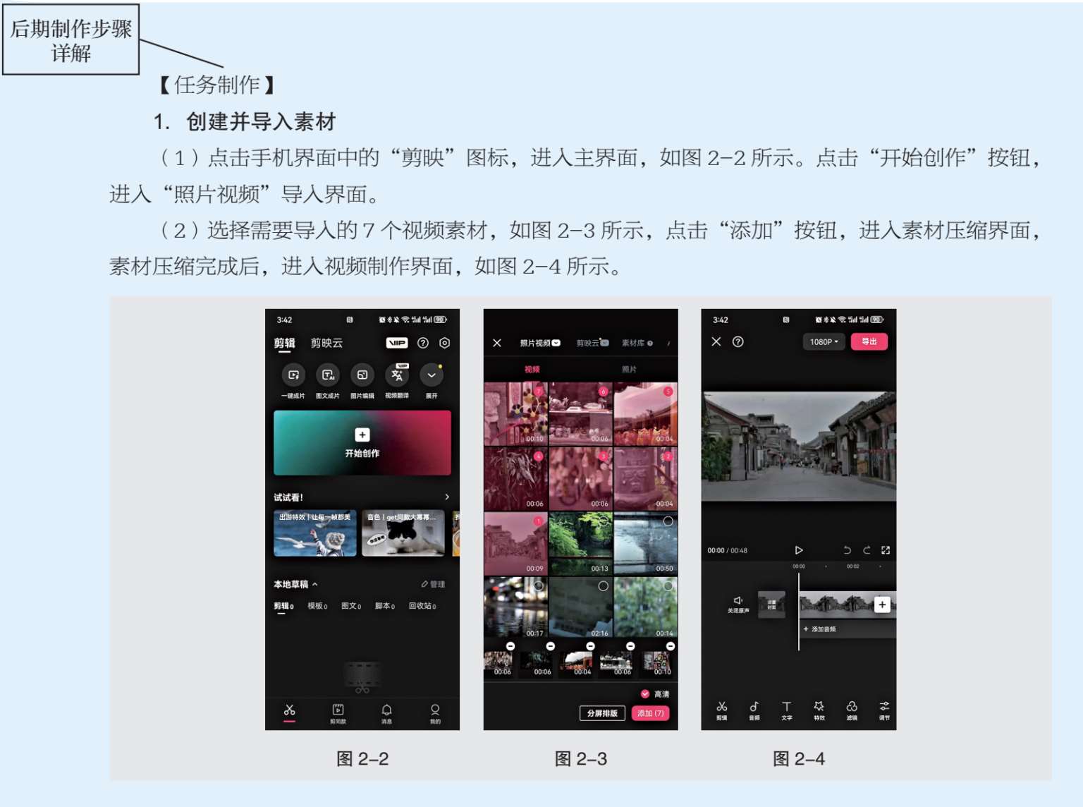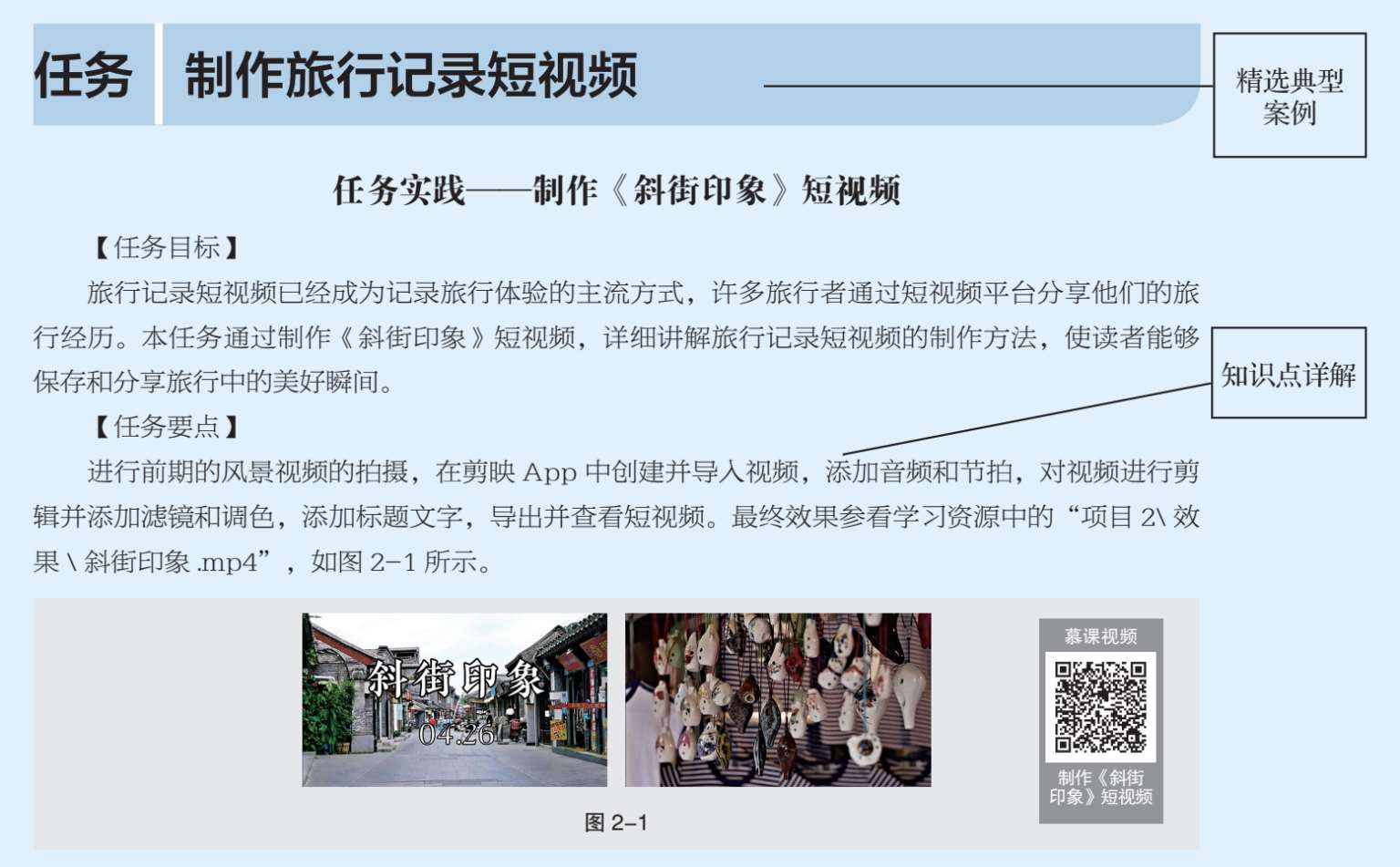 本书案例效果文件所在位置:项目编号\效果\案例名。如项目2\效果\斜街印象.mp4。