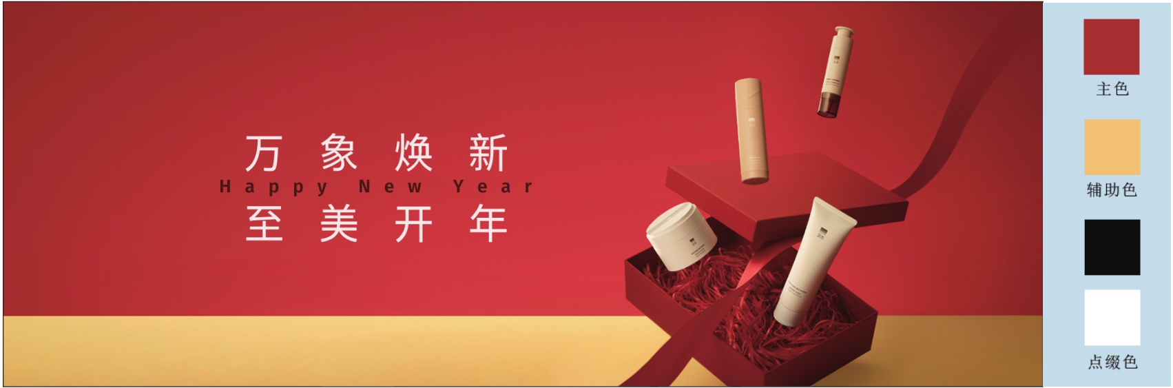 色彩搭配的黄金比例为70:25:5,其中占总版面70%的为主色,占25%的为辅助色,占5%的为点缀色。在设计中通常根据网店风格和类目选择主色,再根据主色选择辅助色,最后选择点缀色用于突出设计重点、平衡视觉效果。图2-13所示的商品海报便遵循这个比例。