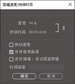Step 14 选中素材,单击鼠标右键,在弹出的快捷菜单中执行“速度/持续时间”命令,打开“剪辑速度/持续时间”对话框,设置持续时间为16s,如图1-37所示。完成后单击“确定”按钮。