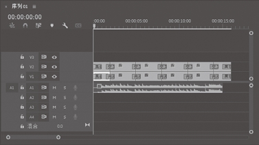 Step 13 将音频素材添加至A1轨道中,在00:00:01:05处和00:00:16:06处裁切素材,然后删除裁切后的第1段和第3段素材,并调整第2段素材的位置,如图1-36所示。