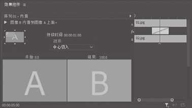 Step 11 在“效果”面板中搜索“内滑”视频过渡效果,拖曳至V1轨道中其他素材之间,并在“效果控件”面板中调整运动方向,如图1-34所示。