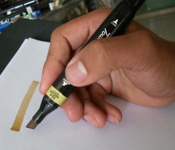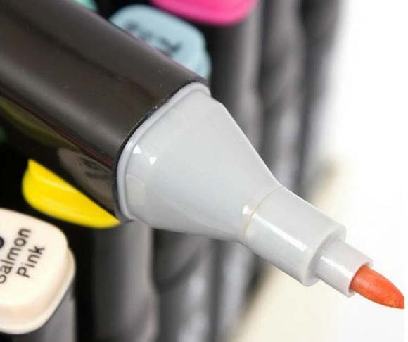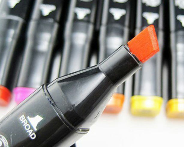 马克笔很常见,也比较经济实惠,在设计用品店就可以买到,而且只要打开笔盖就可以用于绘画,不限纸张,可以给各种素材上色。买马克笔时,要了解马克笔的属性和画后的感觉。市面上常见的马克笔品牌有韩国TOUCH品牌等。马克笔一般有粗细两头,水量饱满,颜色丰富,其中亮色比较鲜艳,暗色比较沉稳。墨水未干时叠加,颜色会自然融合衔接,有水彩的效果。因为马克笔的主要成分是酒精(易挥发),所以笔帽做得较紧。选购时应亲自试一试笔的颜色,因为马克笔外壳的色样和画出来的实际颜色可能有点偏差。