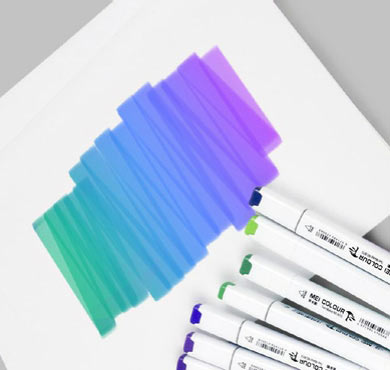 对于手绘纸张,设计师可以选择普通A4纸或A3纸,可以选择素描纸、水彩纸等,也可以选择马克笔专用绘图纸。马克笔专用绘图纸一般为120g的纸张,可以多次涂画,不易渗透,画出来的效果笔触分明、色彩保真。手绘纸张的大小应不小于A4纸,因为马克笔绘画注重整体效果,如果要表现细节,还要搭配使用其他笔,纸要大一些才可以。