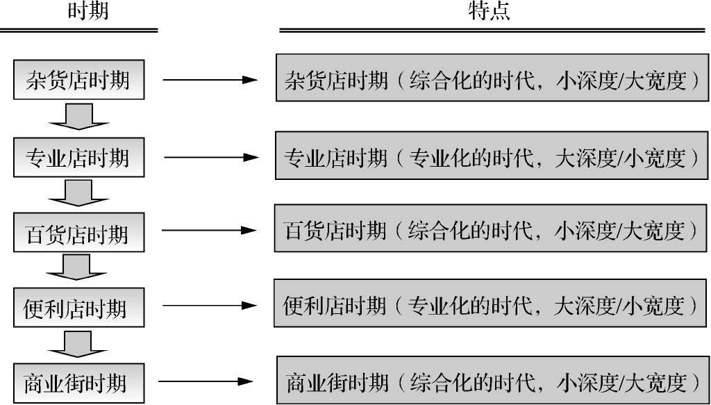 总体来看,零售业态发展理论主要从外在环境变化及内在业态发展的特点两个方面提出了相应的概念和观点。尽管没有一个单独的理论能够全面揭示零售业发展的所有规律,但至少其揭示了某一方面的规律。