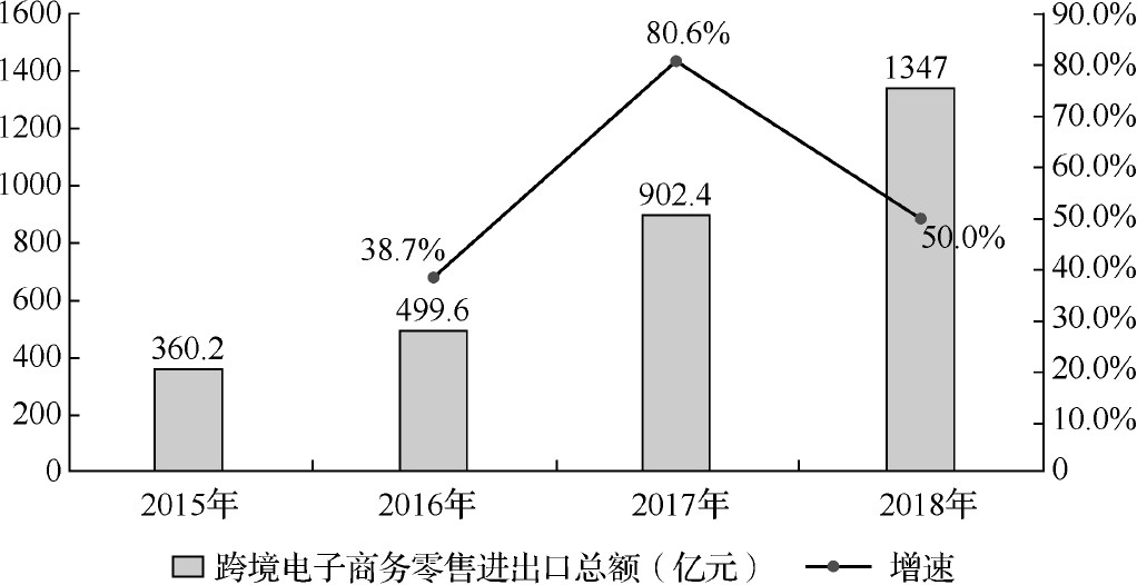 图1-10 2015—2018年跨境电子商务零售进出口总额及增速
