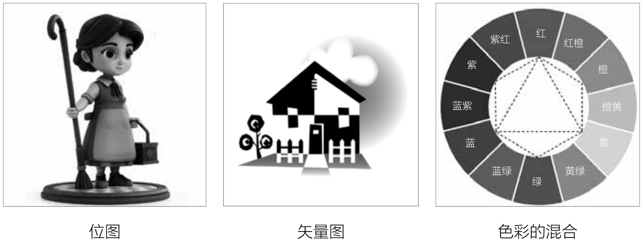 本章将讲解平面设计的基础知识,包括色彩相关知识、图像的颜色模式、位图与矢量图、像素与分辨率、文件的存储格式以及AIGC在平面设计中的运用。读者了解并掌握这些基础知识有助于提升设计水平和设计技能,为日后的设计工作打下坚实的基础。