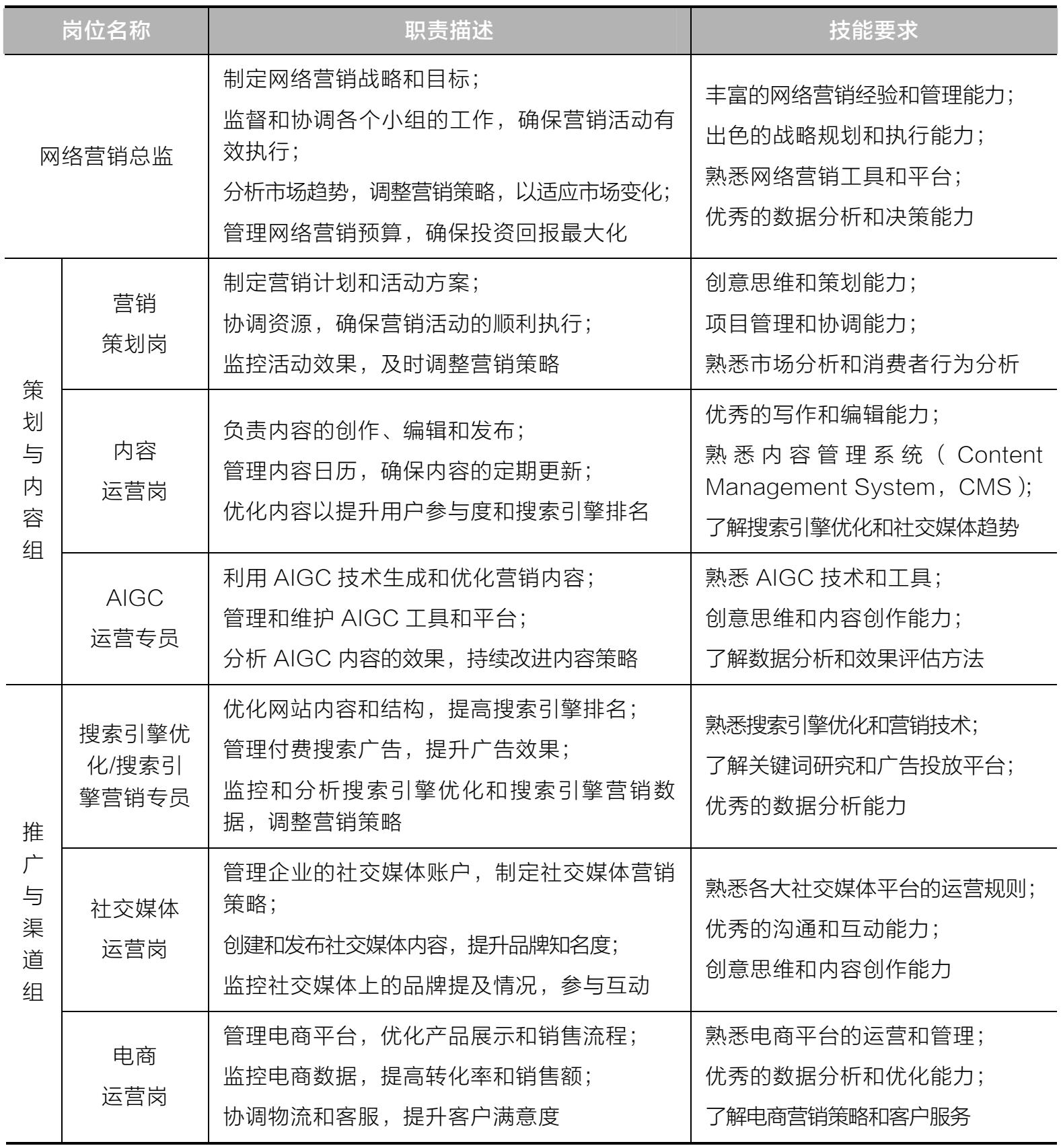 从互联网早期阶段到AIGC时代,网络营销方式发生了巨大变化,这种变化对网络营销岗位职责和技能要求产生了哪些具体影响?