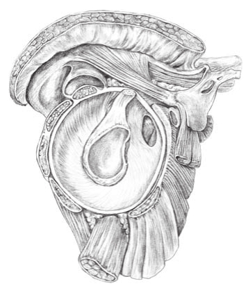 三角肌中束起点在肩峰上方外表面,主要负责肩外展(向心)、肩内收(离心)。