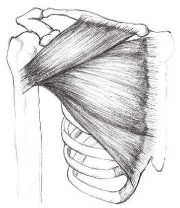 提到胸部肌肉训练,不得不说的一块肌肉就是前锯肌,它在胸腔侧壁位置,也就是我们常说的“肋条骨”附近,尽管它在身体正面,但(部分)却是从肩胛骨(肩胛骨内侧缘和肩胛骨下角)处长出的,通过胸壁与第一至九肋相连。前锯肌可以将肩胛骨向前拉伸,大多数动作都有前锯肌的参与,在卧推、俯卧撑、推举等动作完成过程中,前锯肌起到稳定的作用。