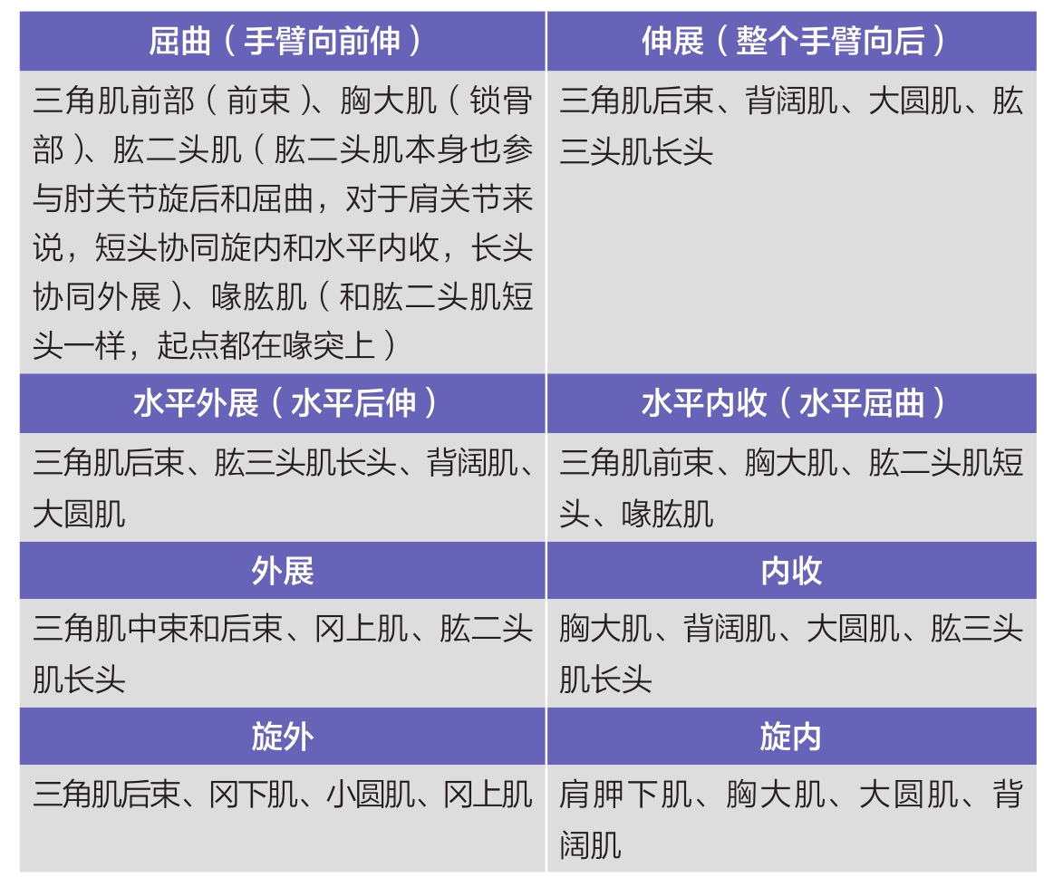 表2.1 与肩关节相关的动作和肌肉