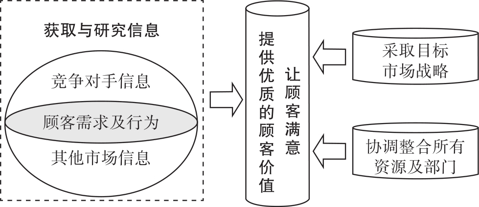 以研究并管理顾客需求为核心的营销就成为企业增值活动的起点,并贯穿企业价值链始终,在研发、采购、生产、销售、售后服务等各环节发挥着重要作用,如图1-2所示。