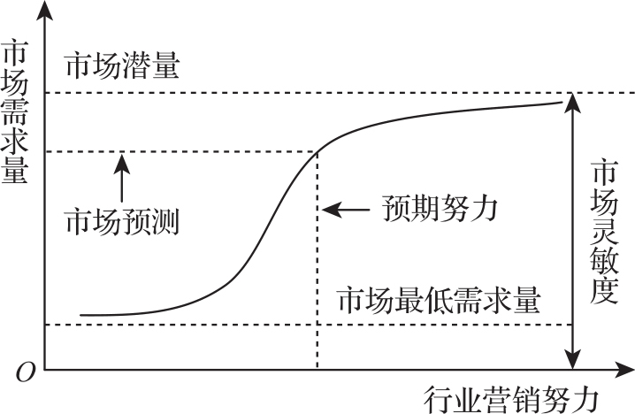 企业潜量是相对于竞争者的营销努力,企业的营销努力是其产品销售量(额)所能达到的极限,也是市场对企业产品需求量的最大值。