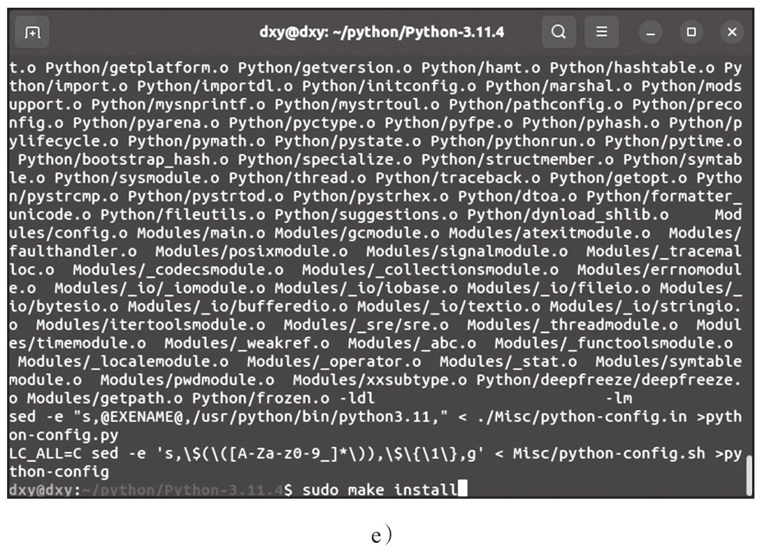 步骤5 执行“sudo make install”命令开始安装,如图1-11e所示。