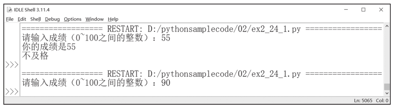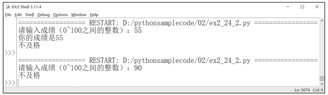 则无论score<60这个条件是否成立,第4行代码都会被执行,如图2-43所示。