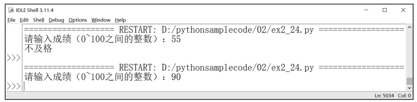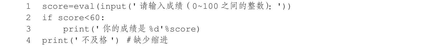 则第3行和第4行代码都是只有在score<60这个条件成立时才执行,如图2-42所示。
