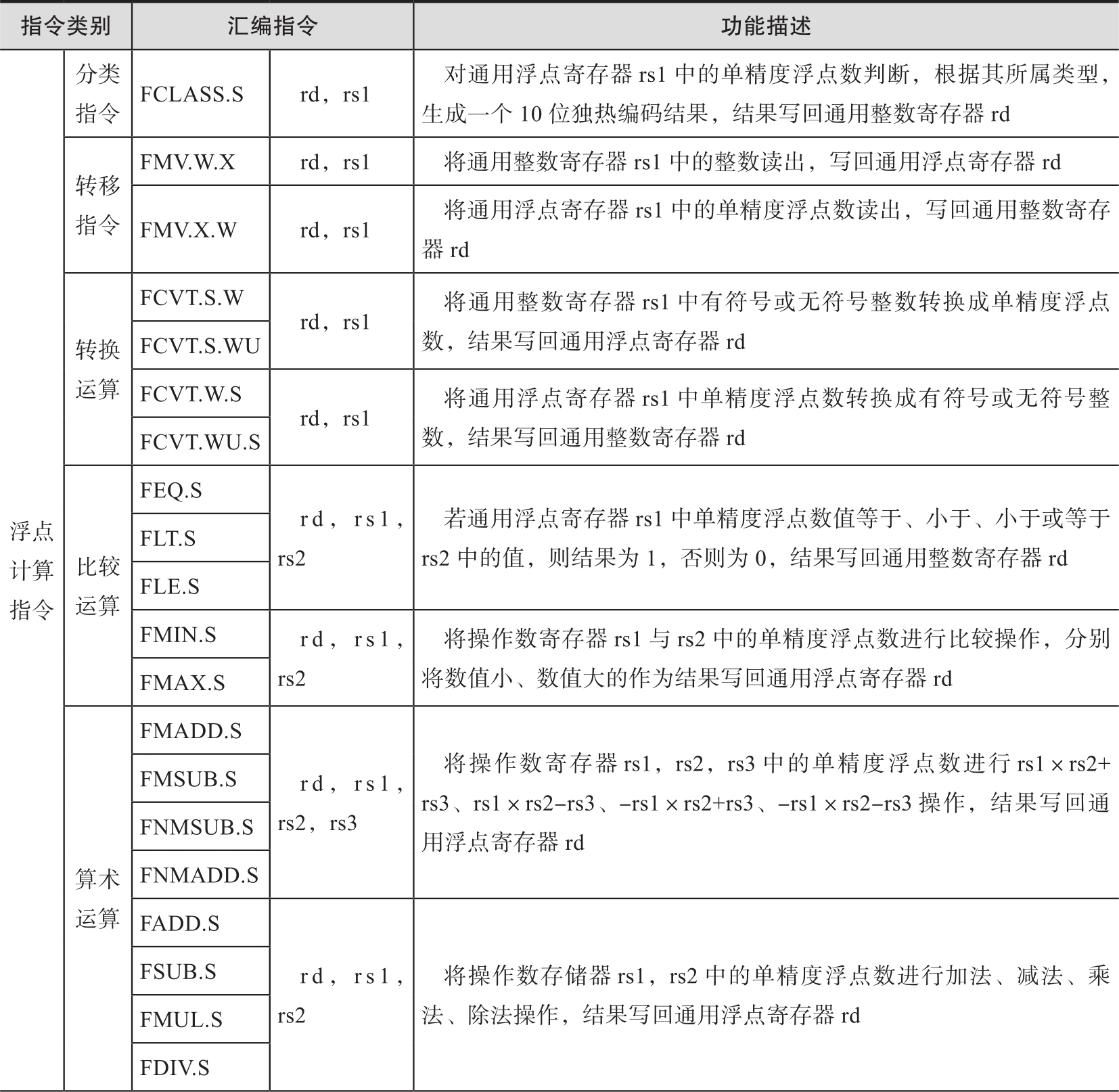 表2-6 RV32F指令列表