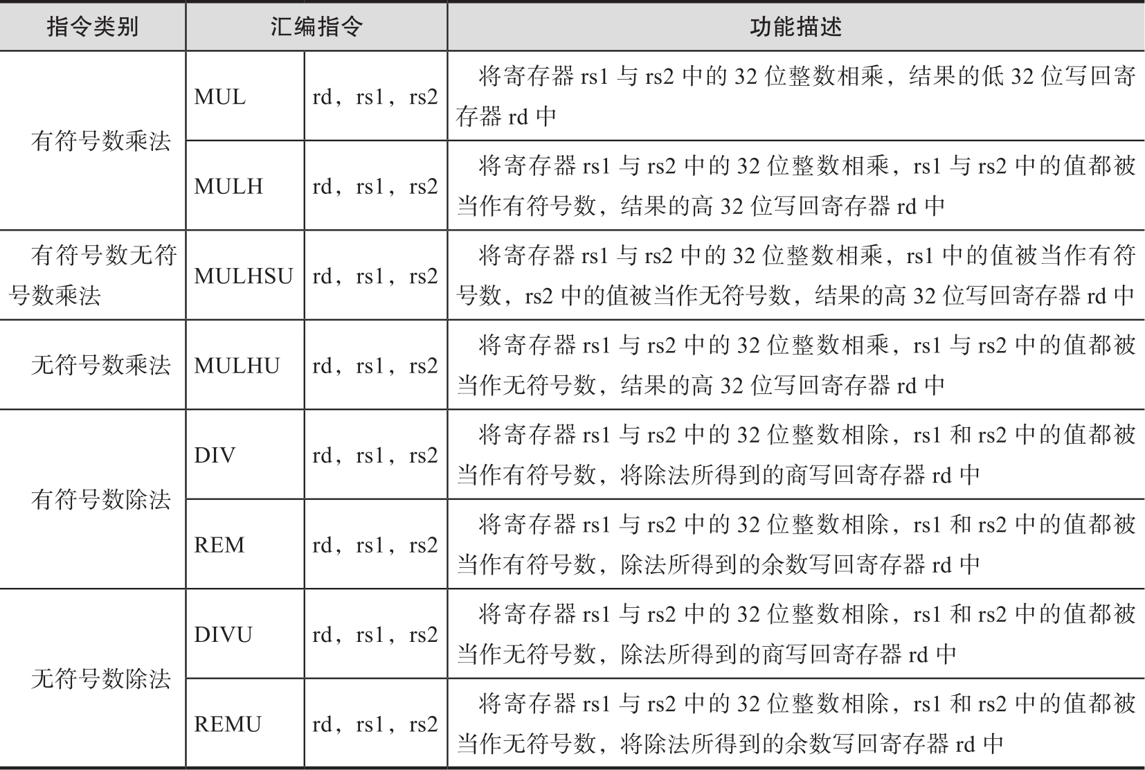 表2-5 RV32M指令列表