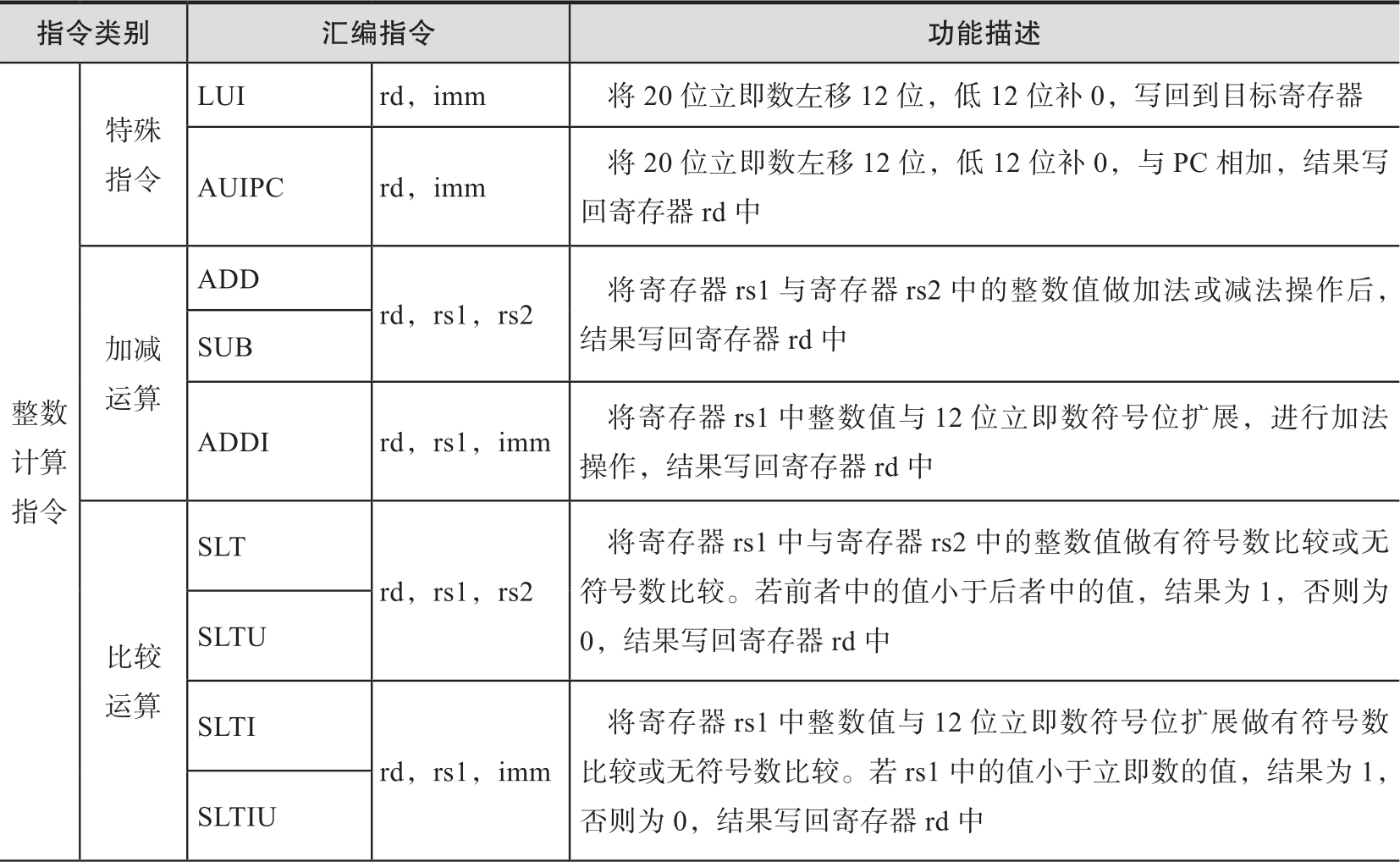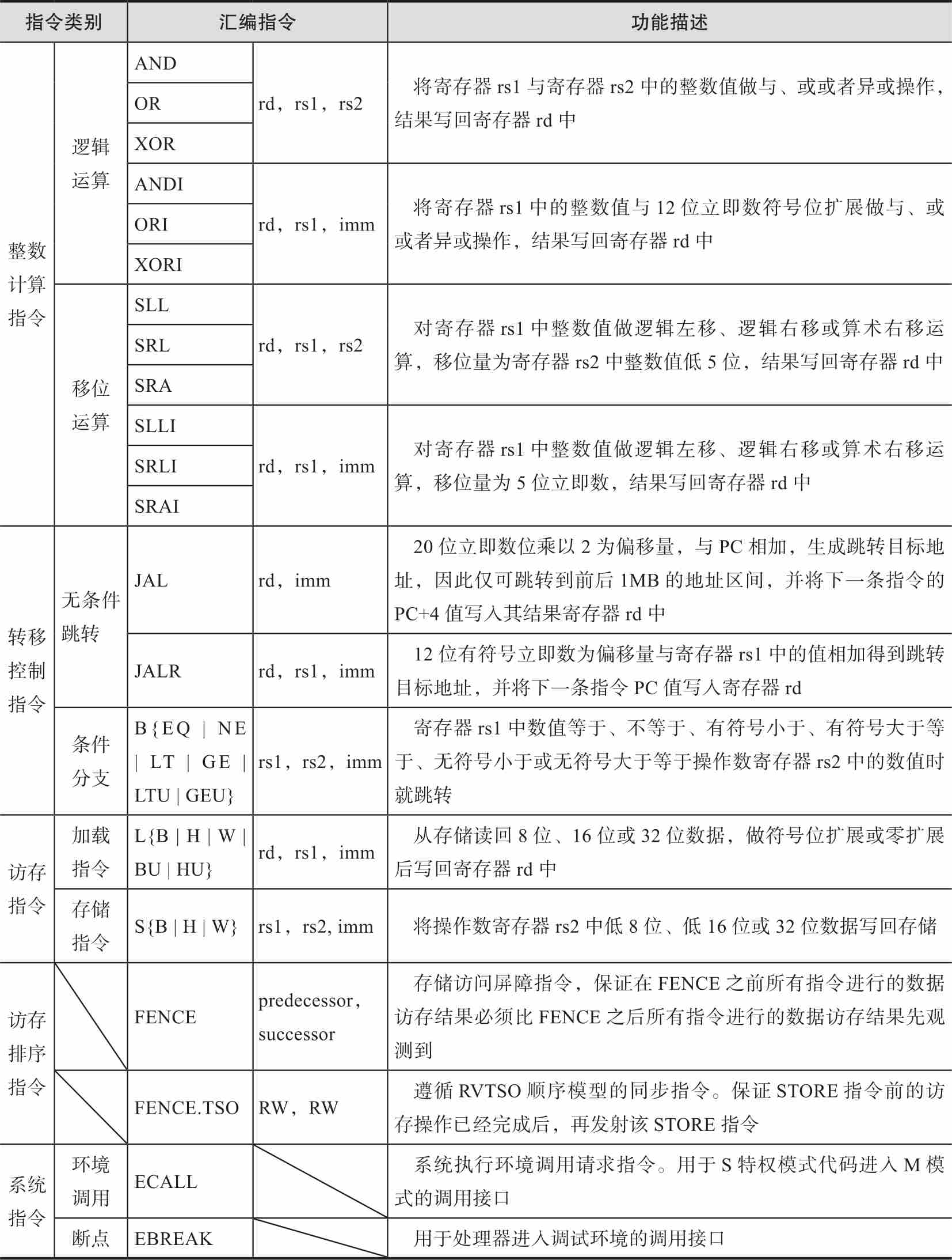 表2-4 RV32I指令列表