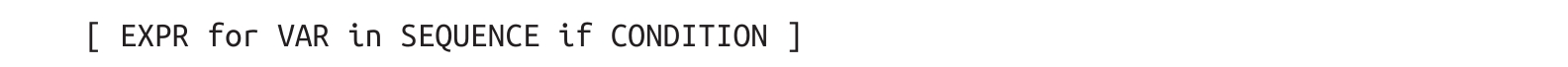 EXPRESSION可以是任何Python表达式,表达式通常包含变量。变量位于VARIABLE字段。SEQUENCE定义了迭代变量的数据源,用于计算并创建最终的序列。