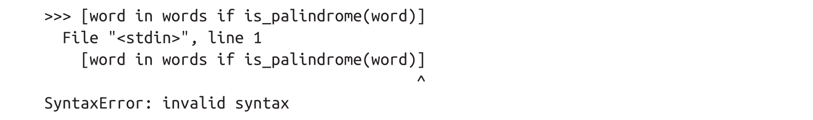 有时,人们可能认为word for word in words多余(确实如此),并试图简化,但这会引发错误: