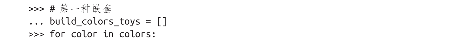 注意,两个for循环是相互独立的,colors和toys是两个无关联列表。有时,可通过不同的形式使用多个for循环,使for循环之间形成更紧密的关系。考虑下面的示例: