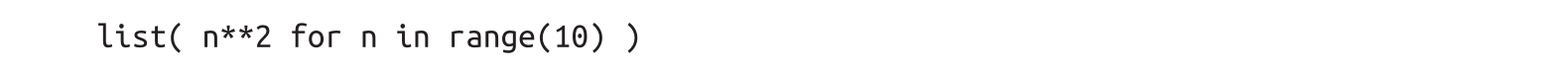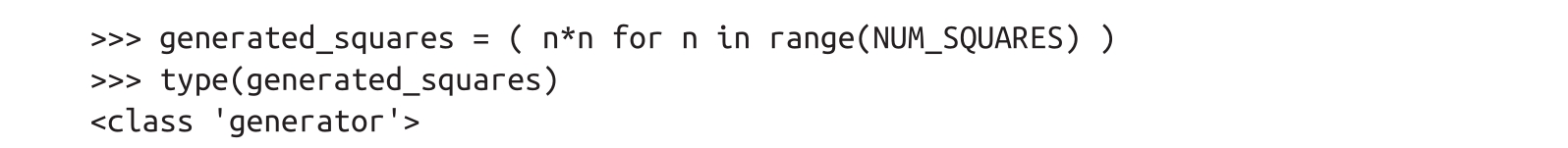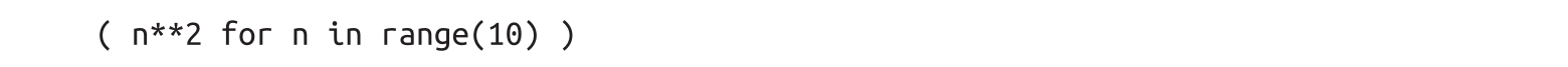 无括号的生成器表达式能统一表示生成器表达式和列表推导式。下面是生成平方数序列的生成器表达式: