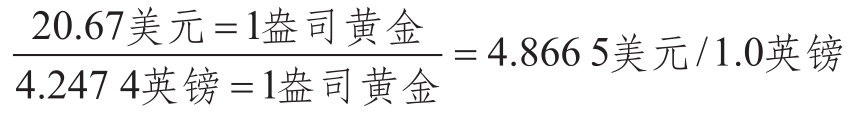 黄金价值20.67美元,英国将英镑与黄金的兑换比率锚定为每金衡盎司黄金价值4.247 4英镑。只要两种货币在各自国家内都可以自由兑换成黄金,那么这两种货币之间的汇率,即黄金平价,就确定了: