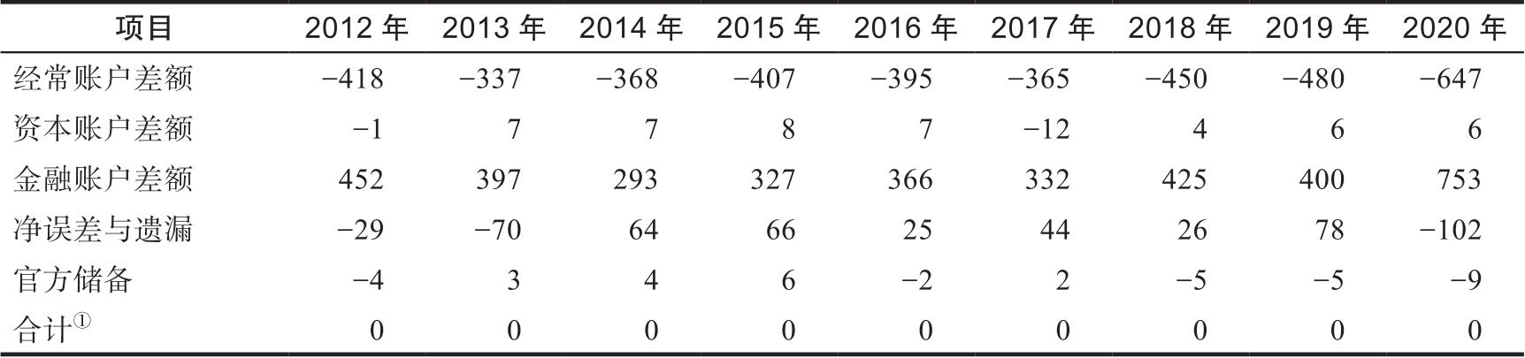 表3.1以美国为例清楚地展示了国际收支平衡表。表3.1列举的五个项目——经常账户差额、资本账户差额、金融账户差额、净误差与遗漏、官方储备项目——合计额的确为零。