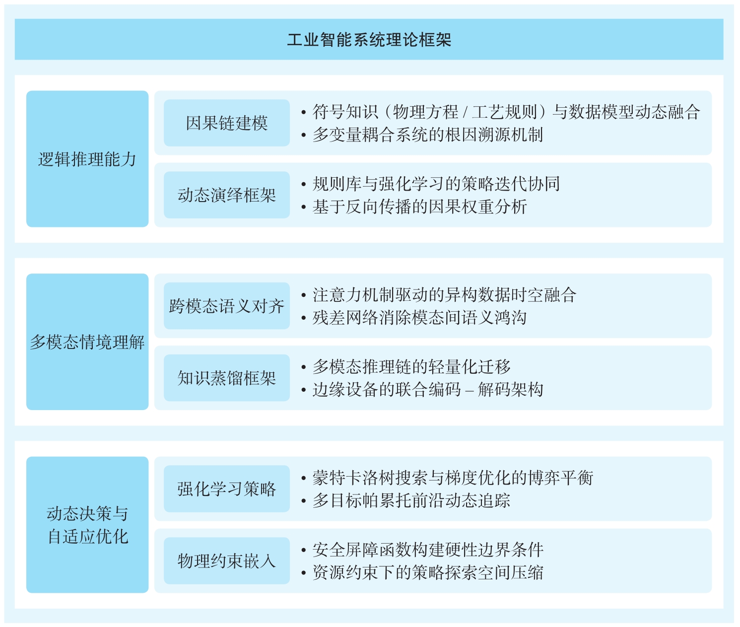 以下从概念、本质与机理层面并结合典型工业场景案例说明工业场景下强推理能力的实现路径。工业场景下强推理能力的三个维度划分如图2.2所示。
