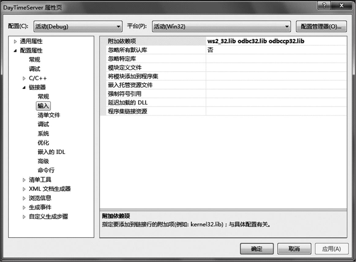 或者在开发环境中的项目菜单里增加对“ws2_32.lib”文件的引入,如图2-2所示。