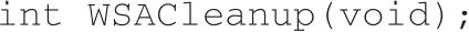 当应用程序完成了Windows Sockets的使用后,应用程序或DLL必须调用WSACleanup()将其从Windows Sockets的实现中注销,并且该实现释放为应用程序或DLL分配的任何资源。