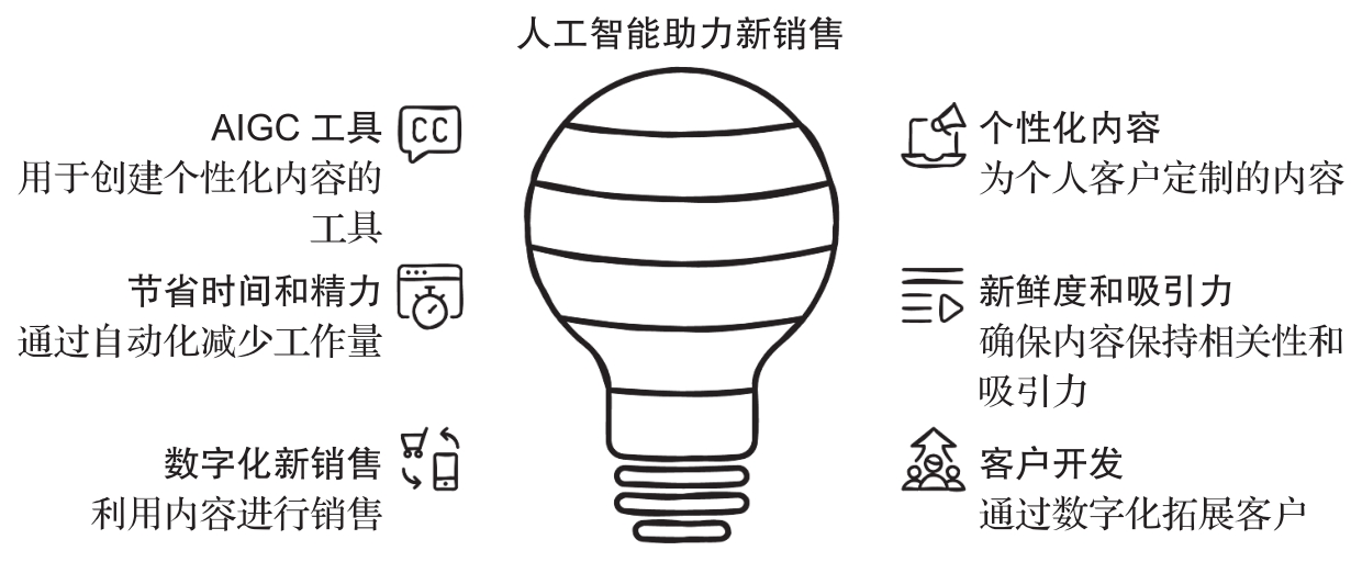 至于AIGC,这是近年来兴起的一种新型内容创作方式。销售人员可以利用AIGC工具生成个性化的营销文案、图片或视频,不仅能节省大量的时间和精力,还能确保内容的新鲜度和吸引力。