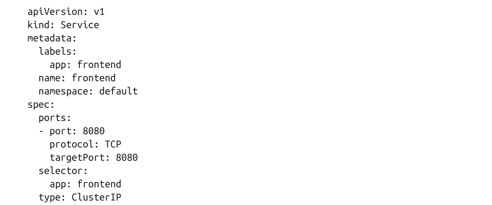 在定义Ingress资源之前,我们需要有一个Service来作为Ingress指向的目标。我们将使用标签(label)来让Service指向上一节中创建的Pod。Service的定义比Deployment要简单得多,如下所示: