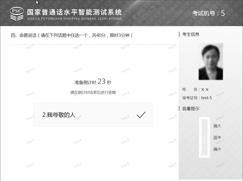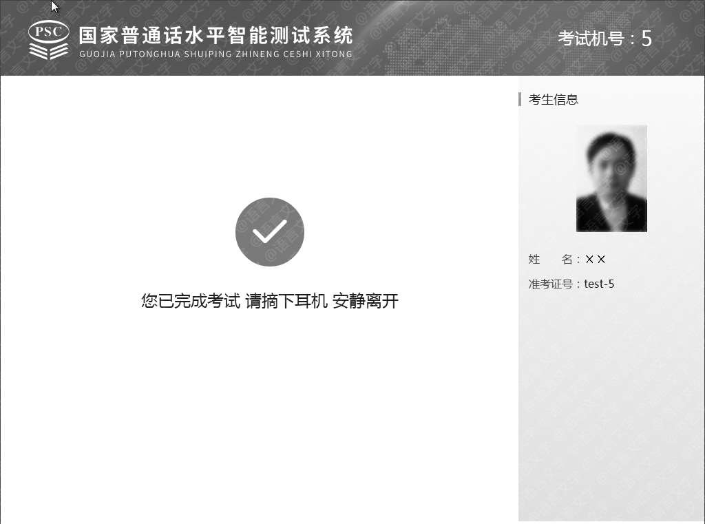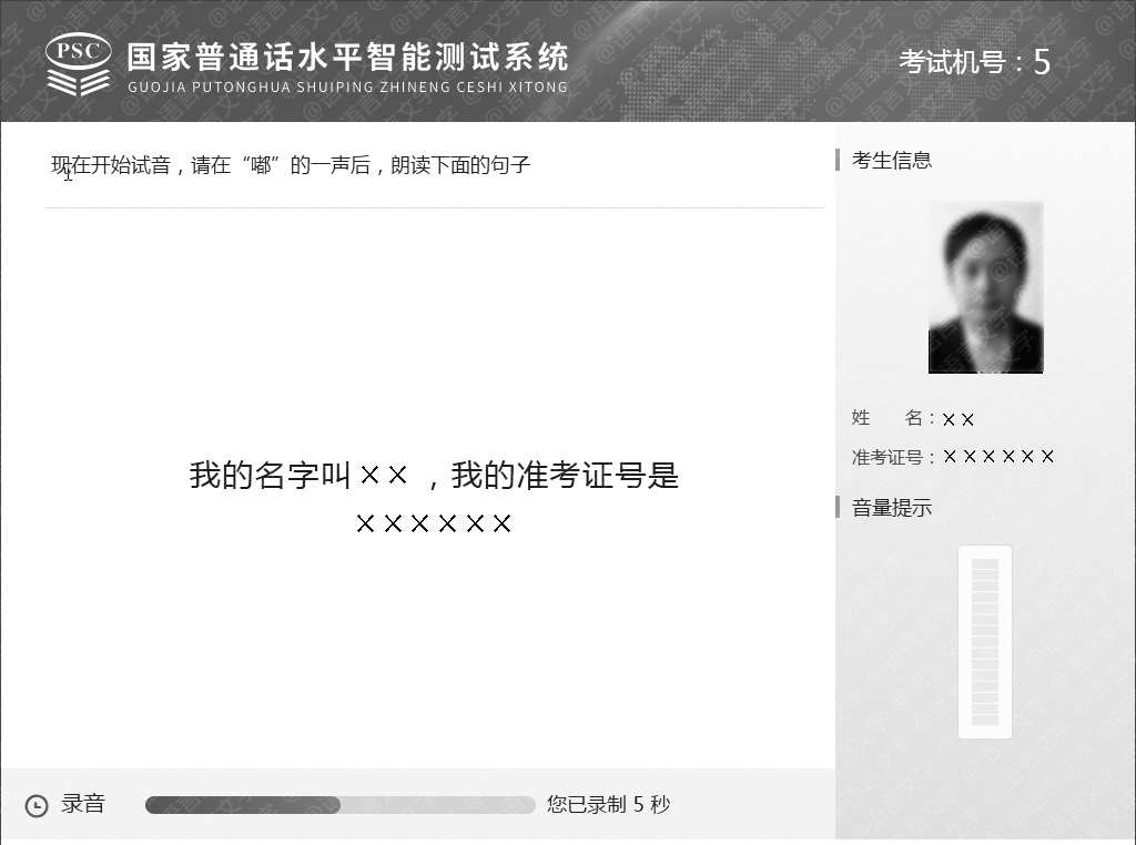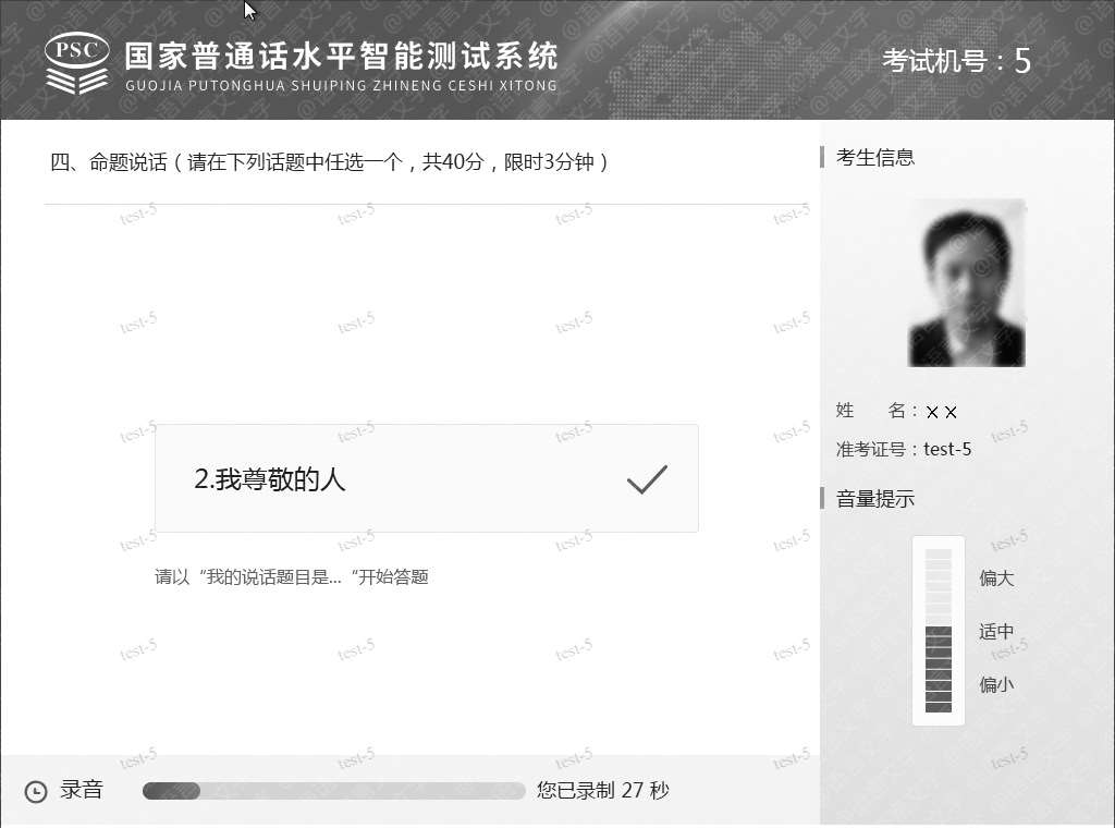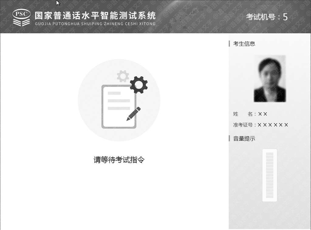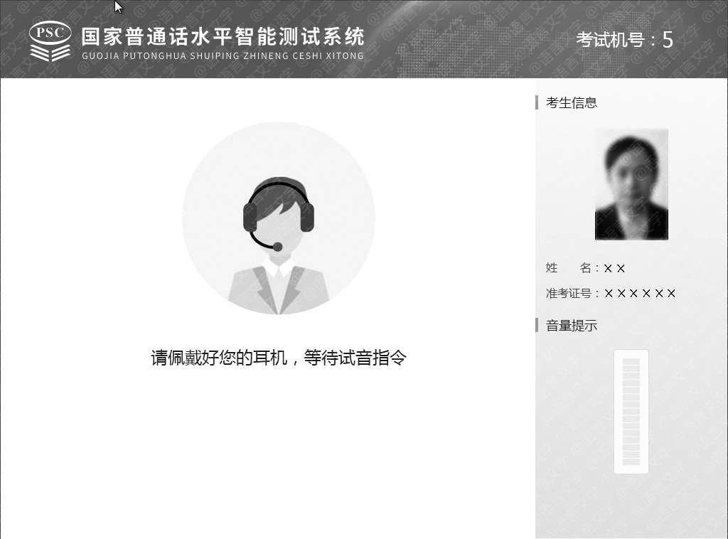 试音成功,等待考场指令。需同一批次所有考生都试音成功后一起开始正式考试。