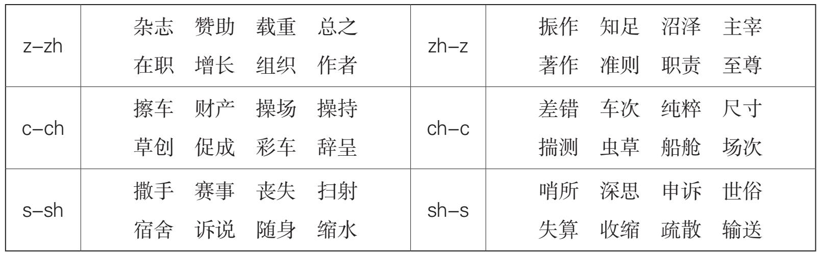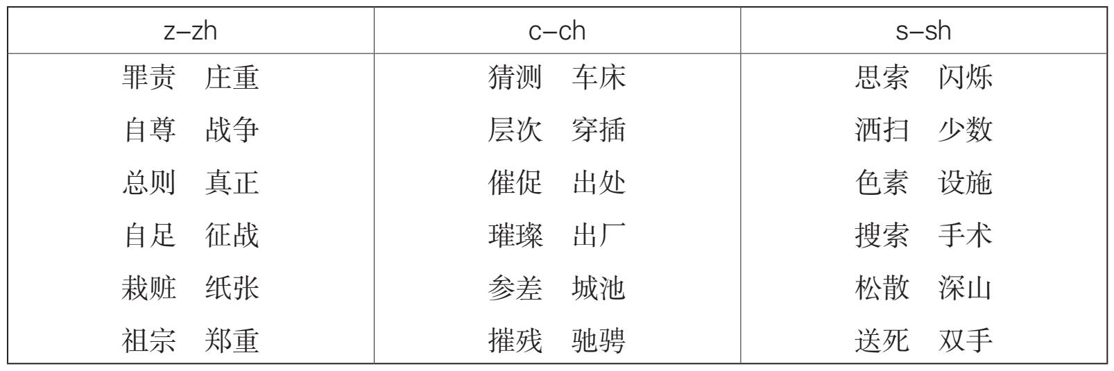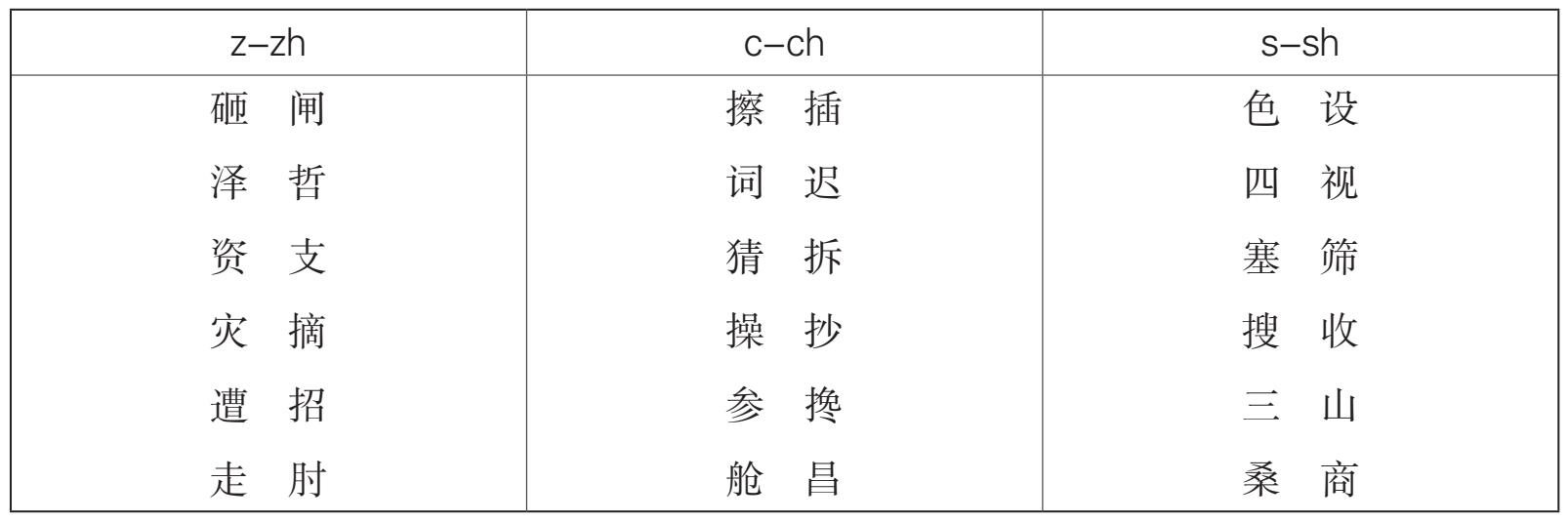 很多方言区的人分不清平舌音与翘舌音,这两组声母发音方法相同,但发音部位不同。平舌音是舌尖与下齿背成阻,翘舌音是舌尖与硬腭前部成阻。正确掌握发音部位是区分这两组声母的关键:要想说对“平”(z),舌头碰牙齿;要想说对“翘”(zh),舌头别伸直。