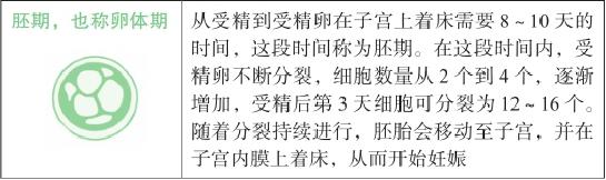 在母体中,从受精到胎儿出生需要260~270天左右(大约40周),这段时间称为胎生期。胎生期可分为三个阶段,如表2–1所示。