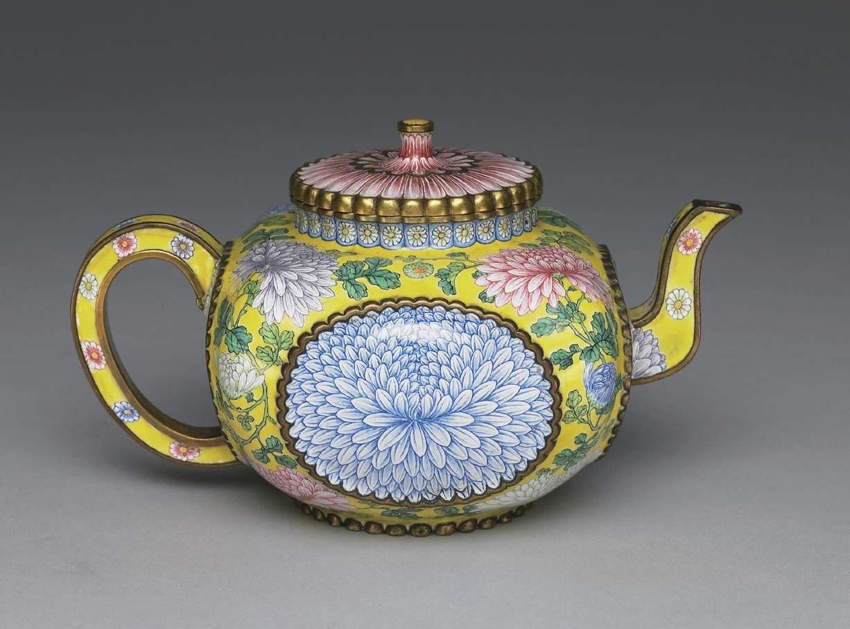 清康熙铜胎画珐琅菊花纹方壶,台北故宫博物院藏