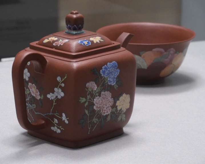 清康熙宜兴胎画珐琅果碗与方壶,台北故宫博物院藏