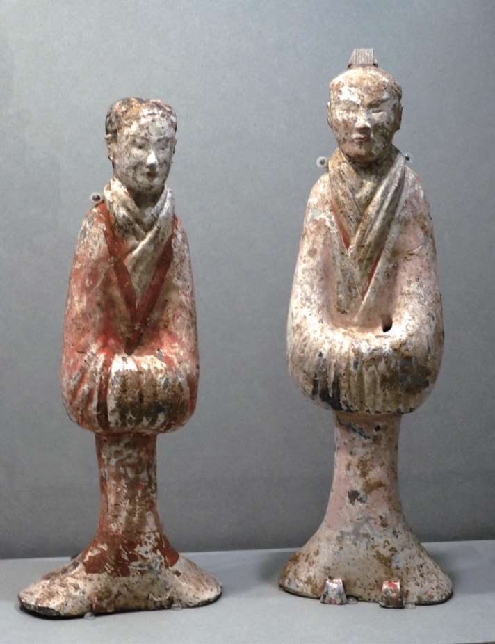 西汉灰陶加彩陶女、男俑,台北故宫博物院藏