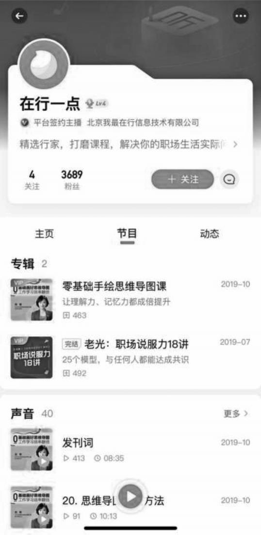 2016年以来,“知识付费”的热度不断上涨。相关平台相继推出音频付费板块,如喜马拉雅App的“付费精品”专区、付费语音问答应用“分答”(后更名为“在行一点”)等等(图1-10)。但近两年内,知识付费的增长却呈现出疲软状态,艾媒咨询发布的《2018—2019中国知识付费行业研究与商业投资决策分析报告》显示,2015年到2018年,付费用户规模从0.48亿人暴增至2.92亿人。然而,用户数量增长的背后,是增长率的大幅度下降,从2017年的102.2%下降到2018年的55.3%。可见,在知识付费浪潮之后,音频行业如何尽快寻求下一出口已迫在眉睫。