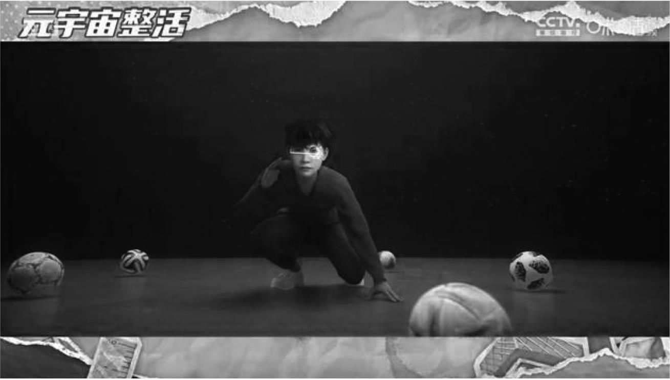 (2)衍生综艺。卡塔尔世界杯期间,为了丰富球迷们的观看体验,咪咕视频推出了赛事衍生综艺《濛主来了之我的眼睛就是尺》,通过足球竞猜、足球冷知识等内容,丰富观众对世界杯赛事的观看体验与认知程度(图1-12)。在嘉宾设置方面别出心裁,除邀请苏醒、黄健翔等大家耳熟能详的嘉宾参与节目外,咪咕还推出了一位AI数智人嘉宾“王小濛”,“王小濛”是对运动员王濛真身、声音等多维度的等比复刻,王濛与王小濛的跨时空对话使节目更具科技感的同时,也为节目增添了许多笑点。