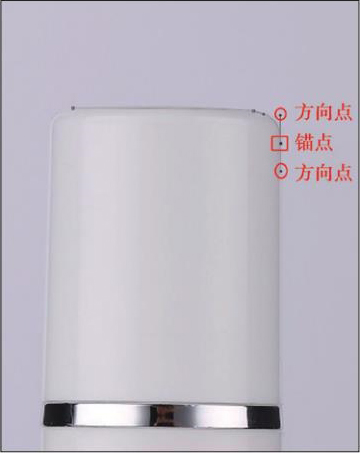 ①用“钢笔工具”针对指定区域勾勒出路径,如图1.1.17 所示。在结构转折的两边添加锚点,每一个锚点都会有前后两个方向点,按住“Alt”键选中方向点,顺着结构线的走势调整方向点,确保抠图的平滑性。