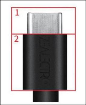 视觉分界指依据视觉感受来进行分界,在锋利的转折过渡处需要分结构,在缓慢圆滚的转折过渡处不需要分结构。它是相对比较模糊的概念,是以视觉感受为分界依据,如图1.1.15 所示,充电线上下材质一样,均为磨砂ABS材料,但是转折过渡处锋利,转折明显,按照视觉分界需要将二者分结构,将充电线继续细分为结构 1 和结构 2。