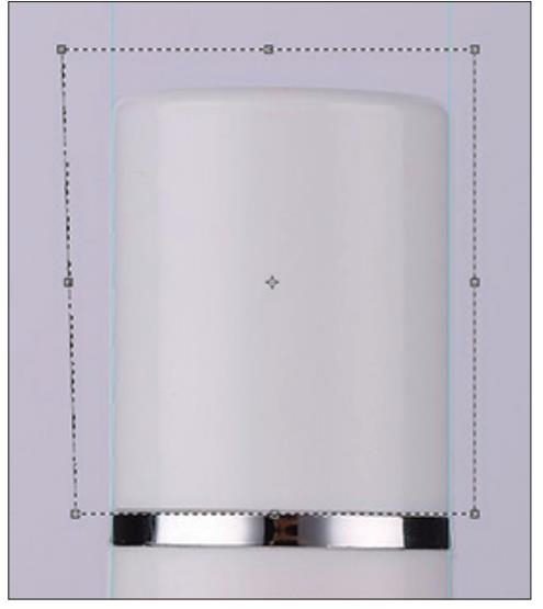 抠图是指在Photoshop中,把图片的某一部分从原始图片中分离出来成为单独的图层。由于大部分商品造型并非都会呈现单一材质、单一结构形式,往往会由不同的材质、不同的结构组成;而不同的结构、材质呈现的光影变化也会有所不同,如图1.1.13 所示。瓶扣部分为金属材质,瓶身为塑料材质。因此为方便补光,商品修图常采用抠图的方式把商品和背景部分分开,同时将商品拆分出各个结构,让各结构部分互不干扰,保证在精修修瑕时不干扰其他结构部分还能方便后期使用变形进行结构塑造。