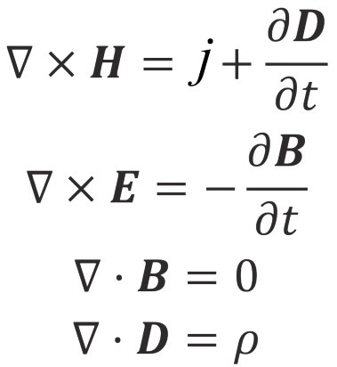 举一个非常重要的偏微分方程的例子——麦克斯韦方程组。这是一组描述电场、磁场与电荷密度、电流密度之间关系的偏微分方程,由四个方程组成: