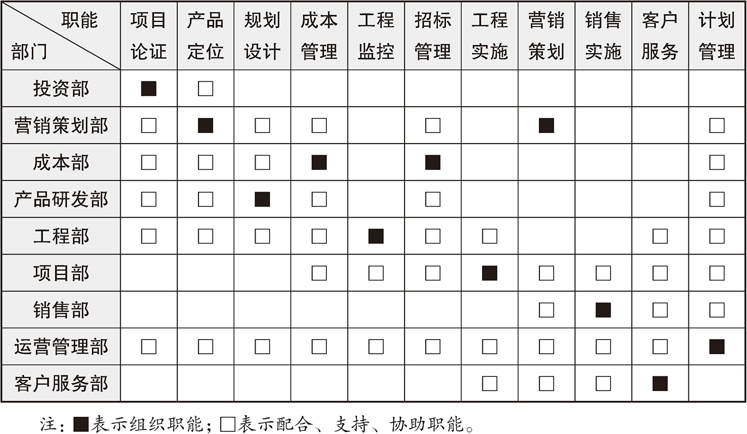 ·按照流程进行职能分解与组合。逐一对各流程环节进行分解,如策划、规划、工程、销售等有哪些工作,把这些职能各项详细列出。
