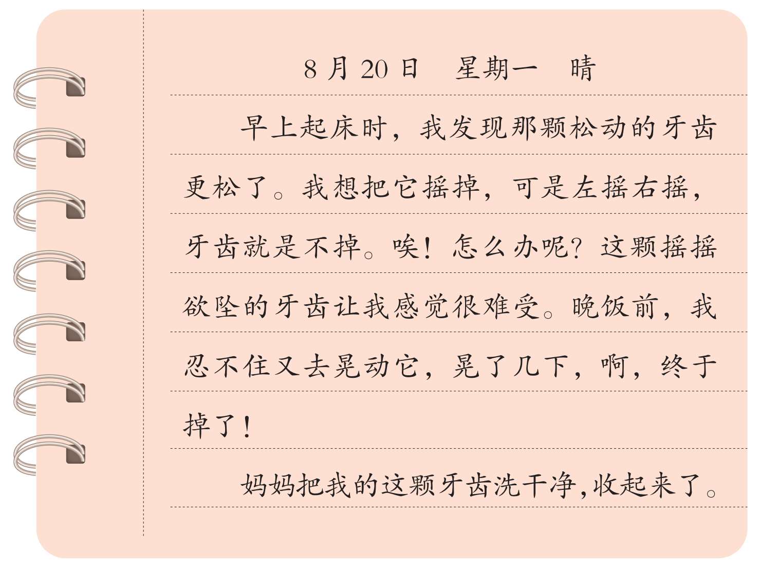 我们也掉落过牙齿,那这样的内容我们是不是也可以写?还有自己生活中的吃喝穿戴,经历的各种事情、各种感想都可以记录下来,都可以作为日记的内容。