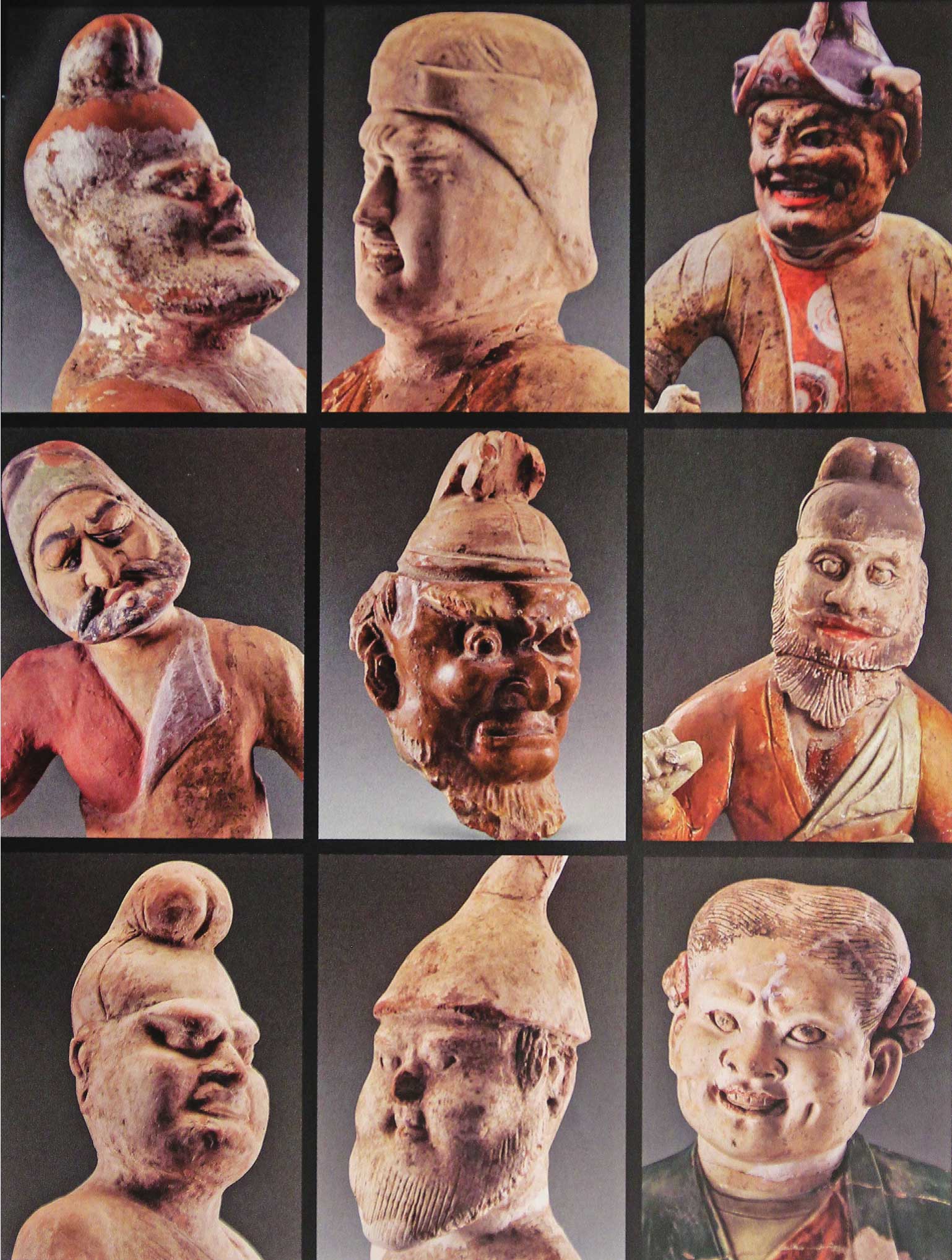 图1-1 唐墓出土胡人俑面貌(采自乾陵博物馆编《丝路胡人外来风——唐代胡俑展》)