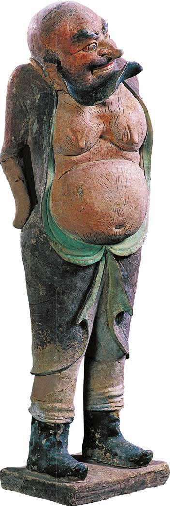 图1-5 庆城穆泰墓出土胡人袒腹俑(采自甘肃省博物馆等编《丝绸之路——大西北遗珍》)
