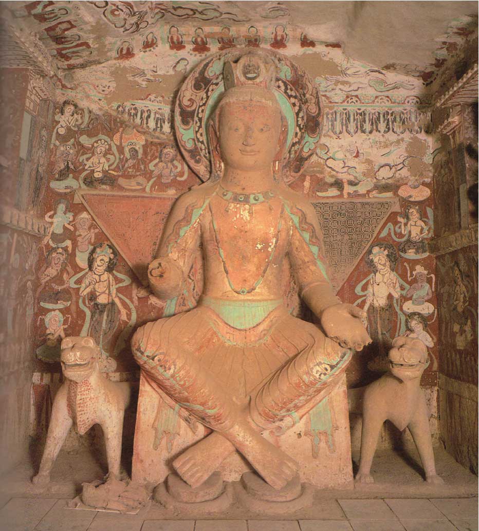 图3 莫高窟北凉第275窟主尊弥勒菩萨彩塑像(敦煌研究院提供)